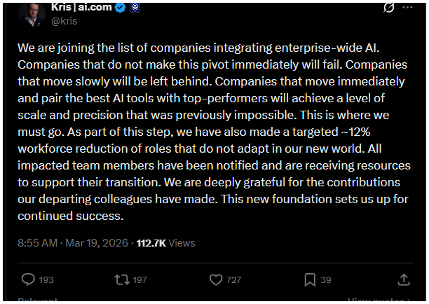 A cég nemcsak a piaci helyzetre reagált, hanem „szerkezeti újrakezdésként” mutatta be az elbocsátásokat. A hagyományos szerepeket AI-alapú munkafolyamatok váltják fel.