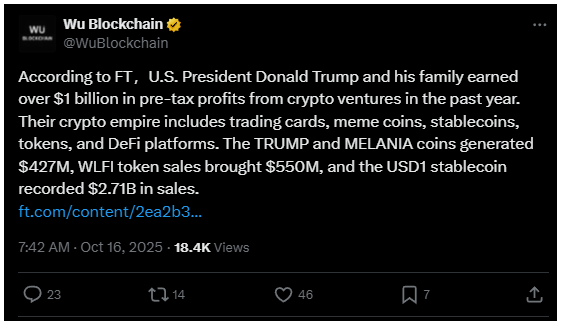 A Wu Blockchain elemzése szerint a Trump-családhoz köthető projektek elképesztő bevételeket hoztak.