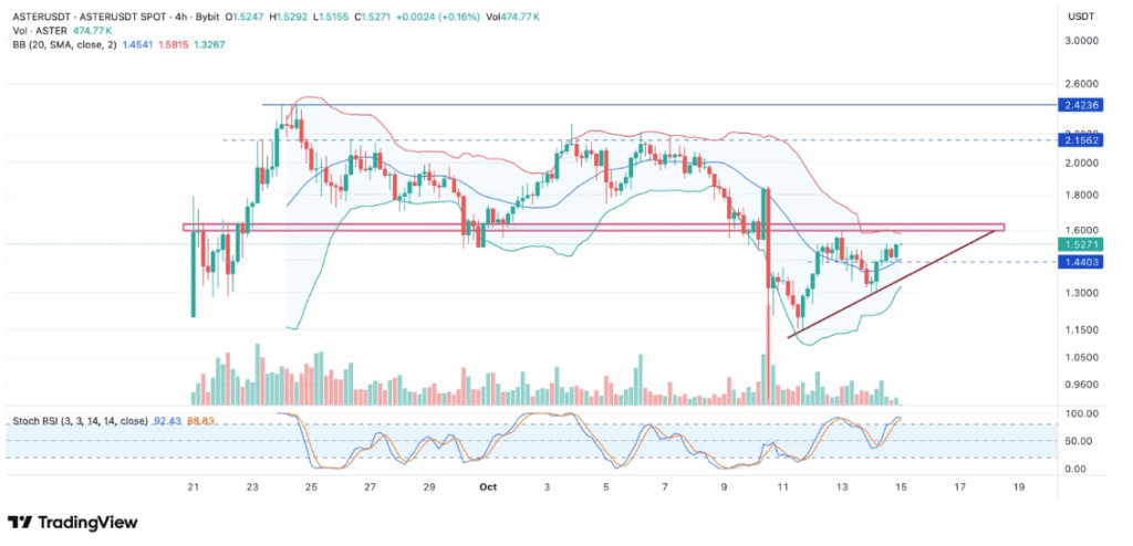 Annak ellenére, hogy az ilyen mozgások gyakran eladási nyomást váltanak ki, az ASTER árfolyama 18%-ot ugrott 24 órán belül, és 1,55 dollár felett stabilizálódott.