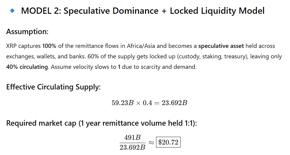Egy második modellben azt szimulálták, hogy az XRP átutalási eszközzé válik, miközben a kínálat 60%-át letétbe helyezik vagy stakelik.