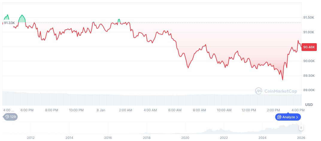 A CoinMarketCap adatai szerint a bitcoin (BTC) jelenlegi ára 91.291,16 dollár, piaci értéke pedig 1,82 billió dollár.