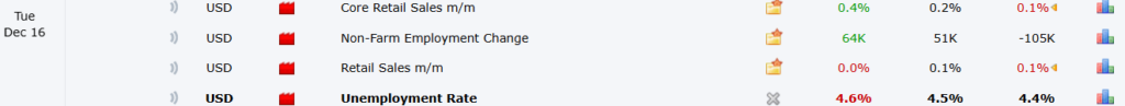 December 16-án jelent meg az októberi kiskereskedelmi forgalom adata és a novemberi amerikai munkaerőpiaci jelentés. Ezek az adatok képet adnak a fogyasztók erejéről és a munkaerőpiac állapotáról, amelyek befolyásolják, mennyire maradhat szigorú a monetáris politika.