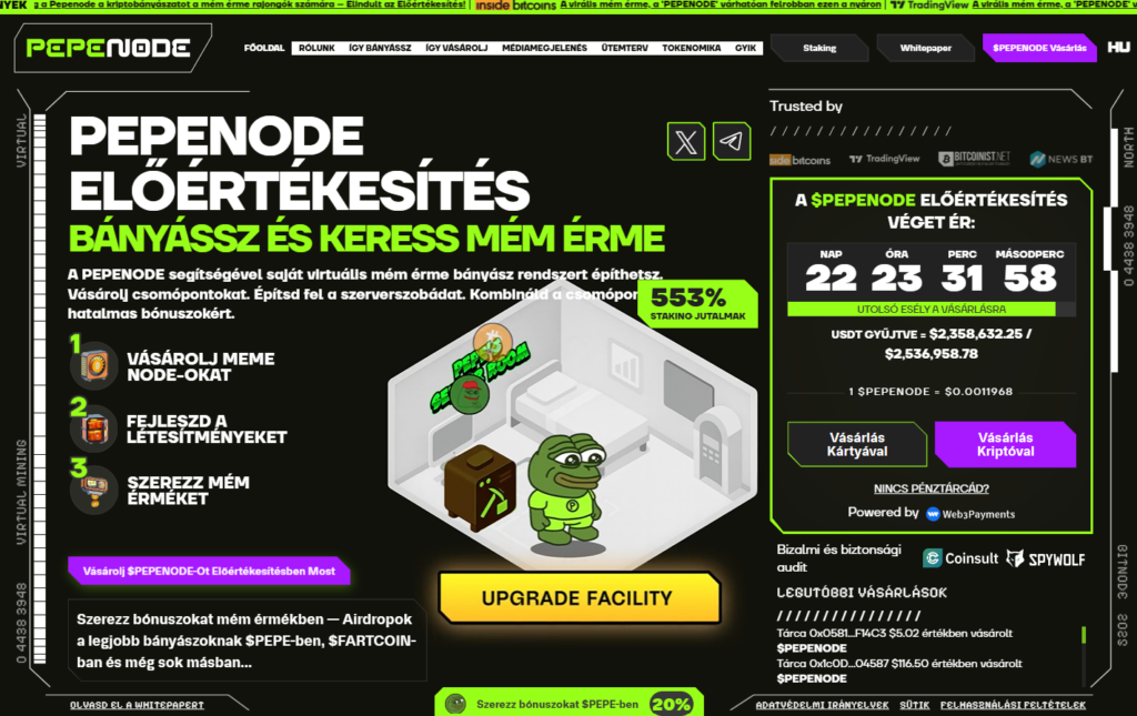 Ebben a környezetben az olyan biztonságos tárcamegoldások, mint a Best Wallet, valamint a spekulatívabb projektek, mint a Pepenode, egyaránt megkaphatják a befektetők figyelmét.