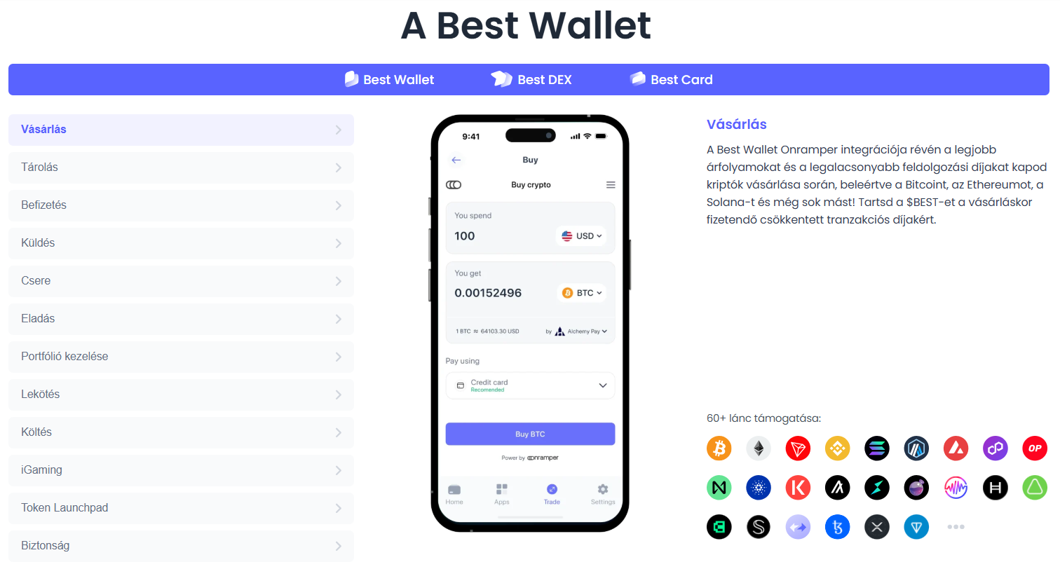 A Best Wallet modern, nem letétkezelő kriptotárca erre kínál megoldást azzal, hogy a privát kulcsok teljes mértékben a felhasználó ellenőrzése alatt maradnak. Kifejezetten a több blokkláncot használó felhasználók igényeire tervezték.