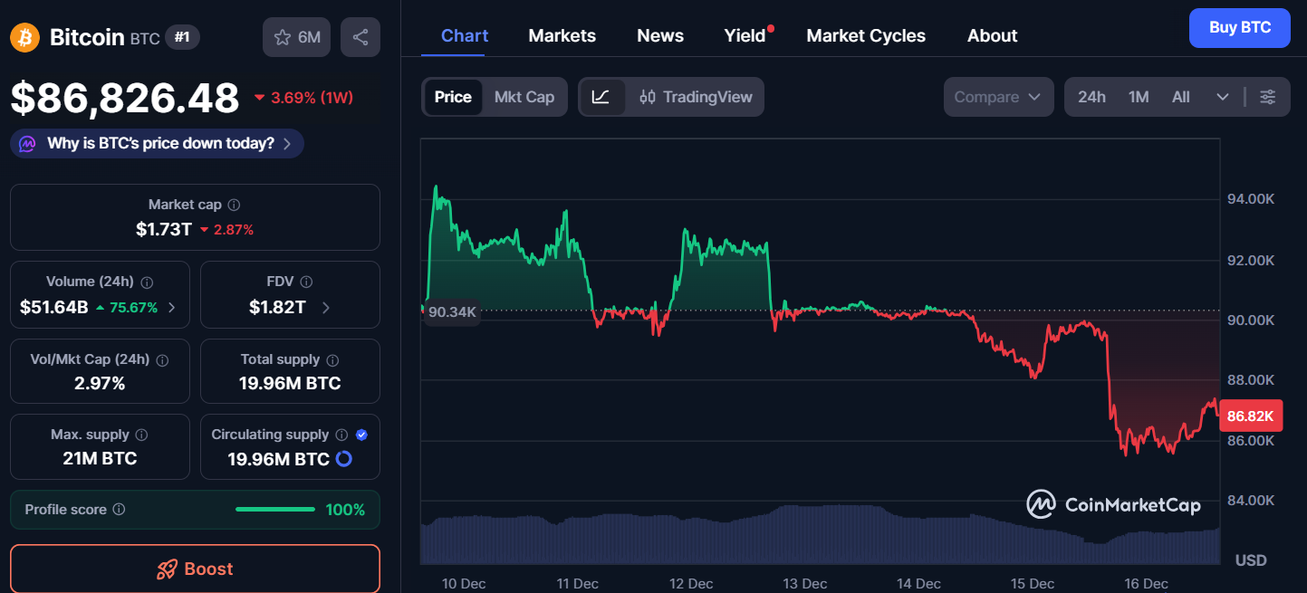 A kriptovaluták továbbra is nagyon érzékenyek a kamatvárakozások és a dollár-likviditás változásaira, ezért ez a hét döntő lehet a Bitcoin rövid távú iránya szempontjából.