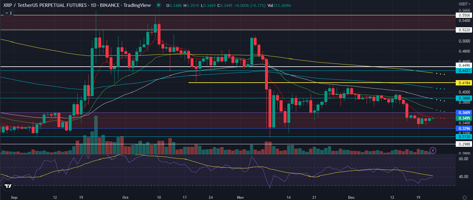 Az cikk írásakor a Ripple 0.3493 dollár és az elmúlt 24 órában 0.14%-ot növekedett.