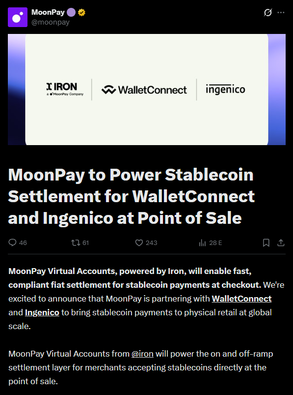 Az egyik jel a MoonPay, a WalletConnect és az Ingenico együttműködése, amely stablecoinos fizetést akar elvinni a fizikai kasszákig.