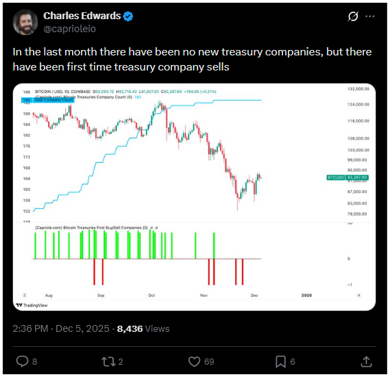 Charles Edwards, a Capriole alapítója korábban arra hívta fel a figyelmet, hogy a körülbelül 126.000 dolláros csúcs és a közelmúltbeli 80.500 dolláros mélypont közötti időszak komoly stresszt okozott a piaci szereplőknek.