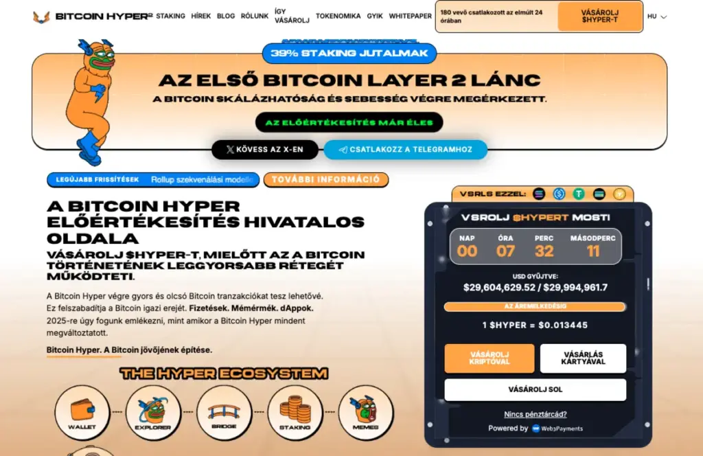 Miközben egyes befektetők eltávolodnak a hagyományos eszköztől, mások egy olyan strukturális rétegbe fektetnek, amely javíthatja a Bitcoin keresleti profilját azáltal, hogy hasznos funkciókkal bővíti. Ez a projekt a Bitcoin Hyper (HYPER).