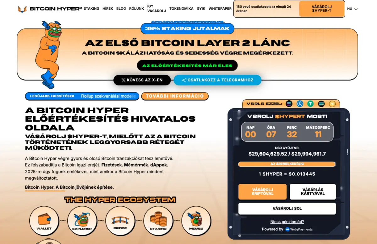 Miközben egyes befektetők eltávolodnak a hagyományos eszköztől, mások egy olyan strukturális rétegbe fektetnek, amely javíthatja a Bitcoin keresleti profilját azáltal, hogy hasznos funkciókkal bővíti. Ez a projekt a Bitcoin Hyper (HYPER).