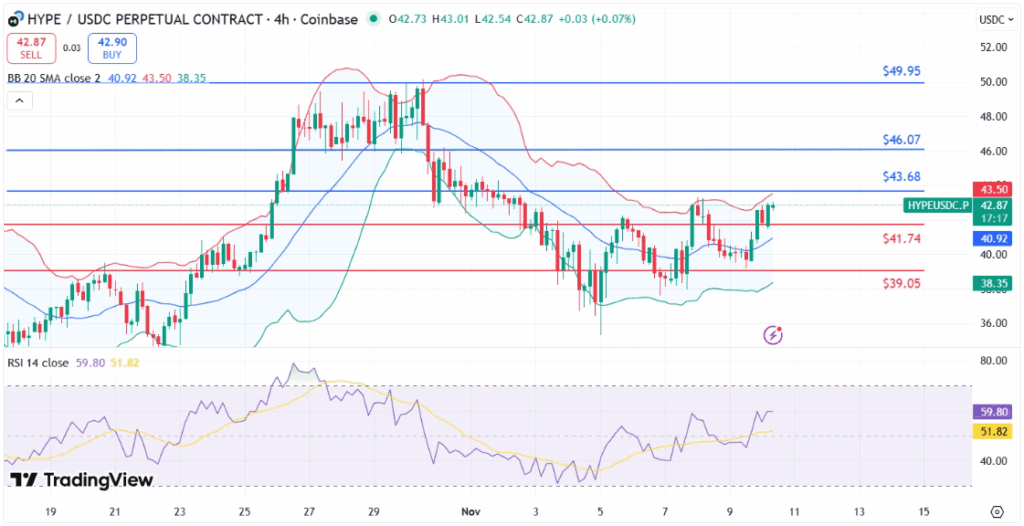 A HYPE jelenleg stabilan a 50 napos mozgóátlag (SMA), azaz 40,79 dollár fölött kereskedik.