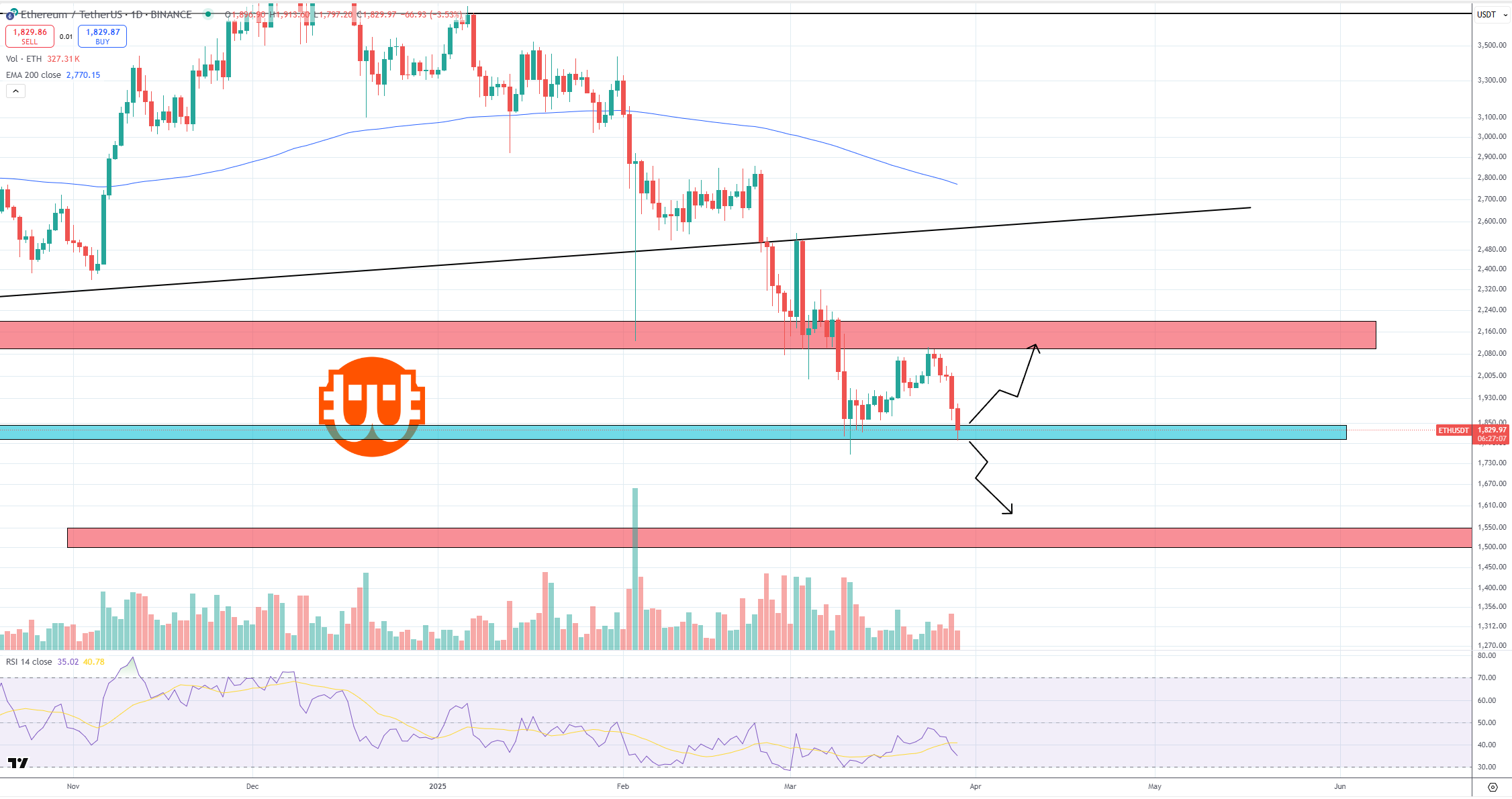 A napi időtávon az ETH egy dupla alj formációt látszik kialakítani, amelynek támaszszintje 1820 dollár.