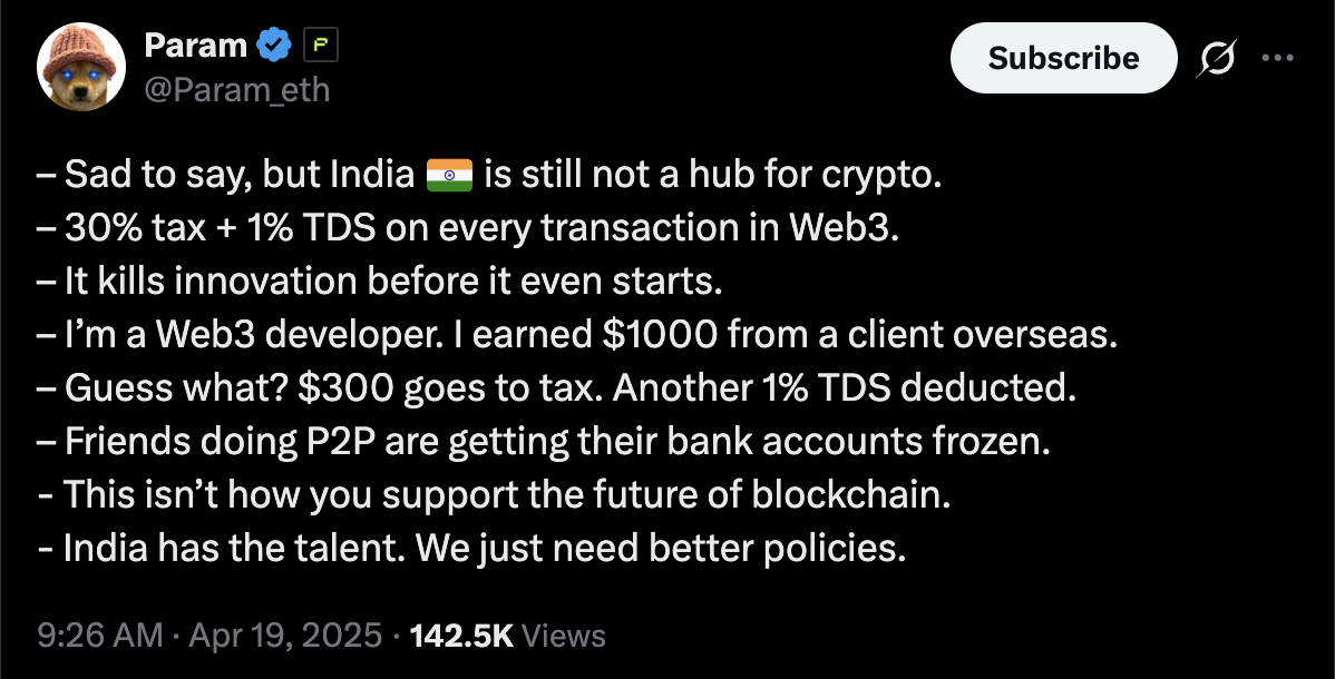 Az indiai kriptokereskedők nem érvényesíthetnek adóveszteséget. Nem vonhatják le más ügyletek veszteségét a nyereségből.