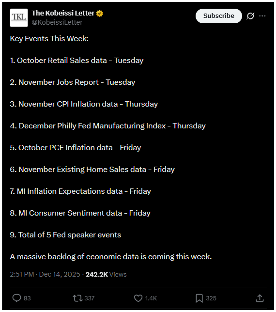 A Kobeissi Letter szerint ennek hátterében nem kriptós hír áll, hanem az, hogy végre megérkezett az a rengeteg gazdasági adat, amely a kormányzati leállás miatt eddig csúszott.