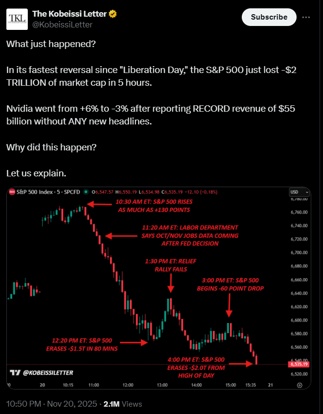 A rekordokat döntő Nvidia-jelentés sem tudta életben tartani a hangulatot, az S&P 500 pedig két trillió dollárt égetett el pár óra alatt.