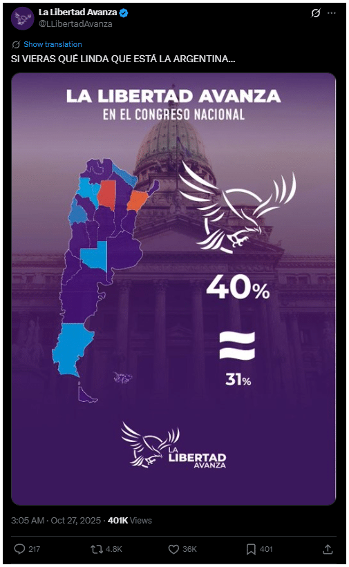 Mindössze egy hónappal ezelőtt Milei pártja még komoly vereséget szenvedett a Buenos Aires-i tartományi választásokon, most azonban erőteljes visszatérést produkált.