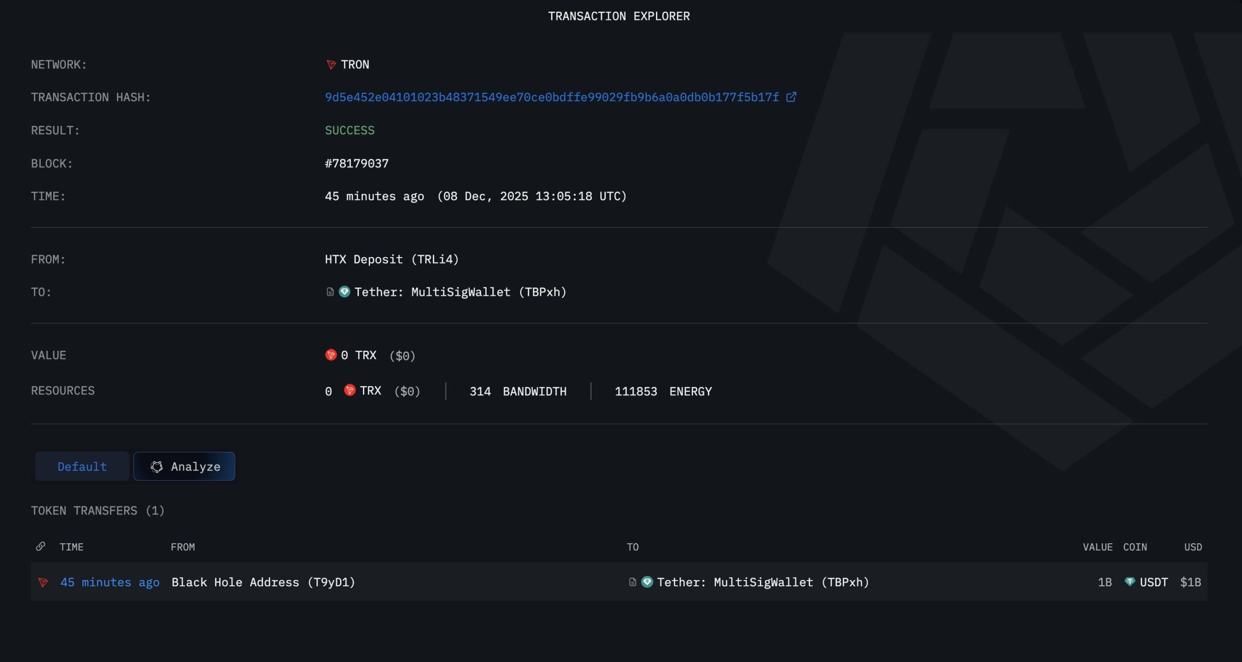 Az Arkham Intelligence jelentése szerint a tokenek a protokoll „fekete lyuk” címéről a Tether multisig pénztárcájába kerültek.