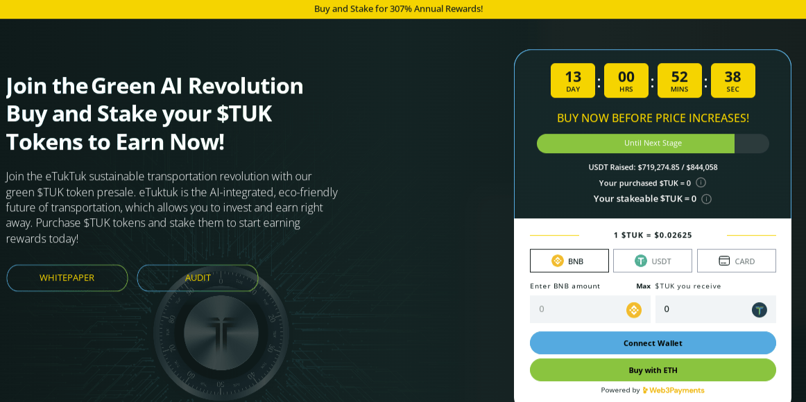 Az eTukTuk (TUK) előértékesítése eddig már több, mint 719 millió dollárt tudott összegyűjteni támogatásként a befektetőktől.