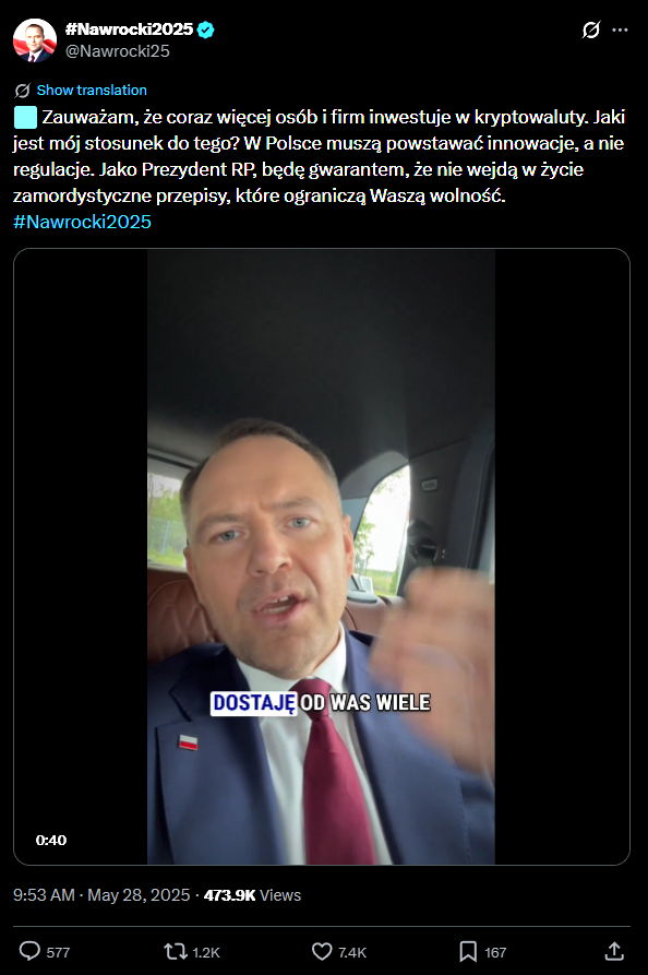 Ez azért is különösen érdekes, mert Nawrocki a választási kampány során egyértelműen a kriptós közösség mellé állt.