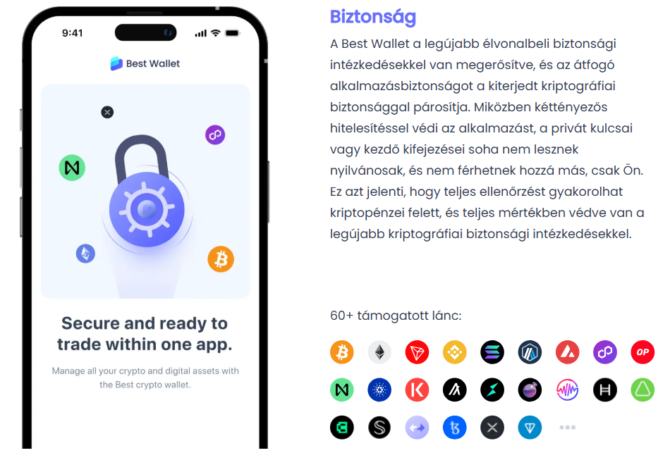 Ezek a biztonsági rétegek teszik a Best Walletet az egyik legbiztonságosabb Web3 tárcává, amely a hidegtárolás biztonságát nyújtja anélkül, hogy a használhatóság vagy hozzáférhetőség csorbulna.