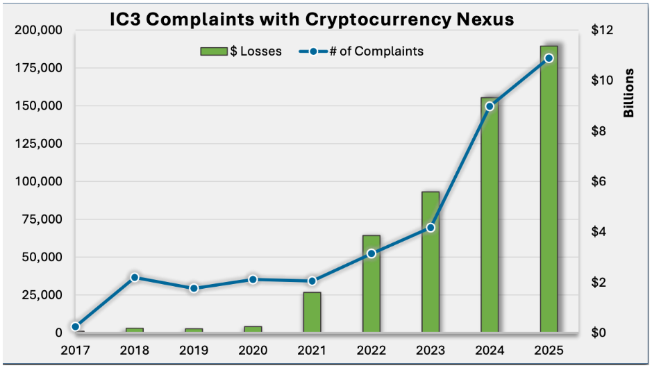 Az Federal Bureau of Investigation legfrissebb jelentése szerint az amerikaiak több mint 11 milliárd dollárt veszítettek kriptóhoz köthető csalások miatt 2025-ben, ami nemcsak rekordnak számít, hanem azt is jelzi, hogy a digitális eszközök körüli ökoszisztéma egy része még mindig komoly bizalmi problémákkal küzd.