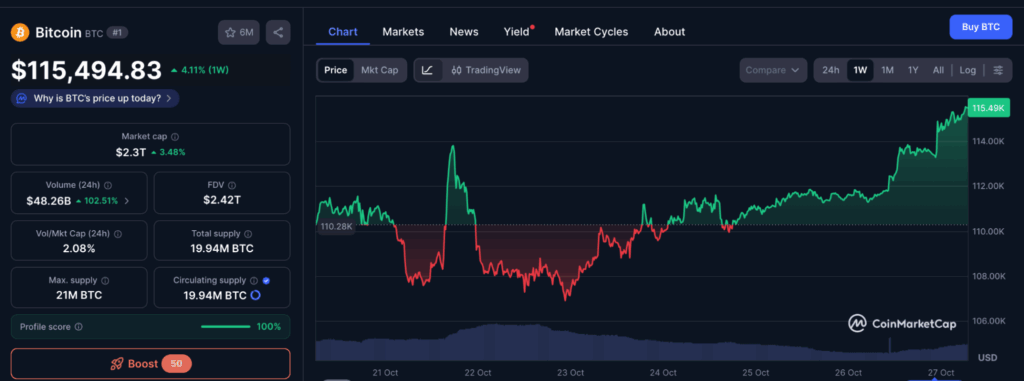 Az október 10-i, 19 milliárd dolláros likvidációs esemény során a Bitcoin 102.000 dollárig esett, mielőtt mára 115,500 dollár körülre kapaszkodott vissza.