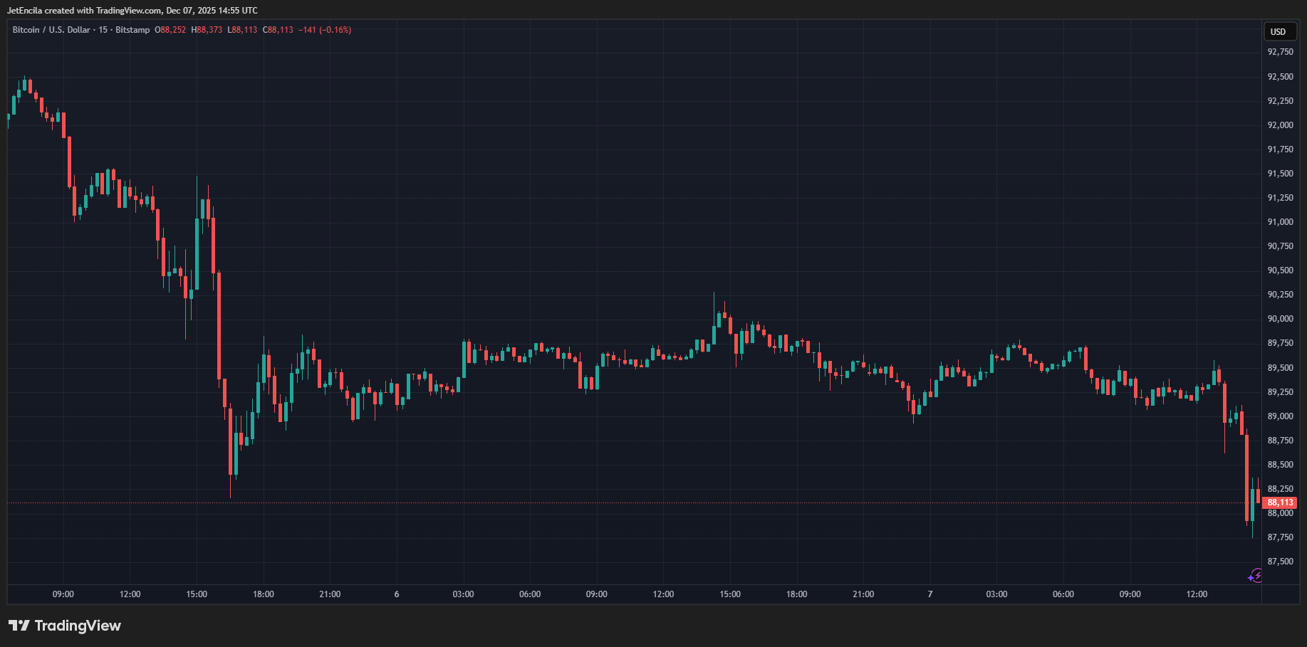 A bitcoin jelenleg 88.113 dolláron kereskedik. Forrás: TradingView