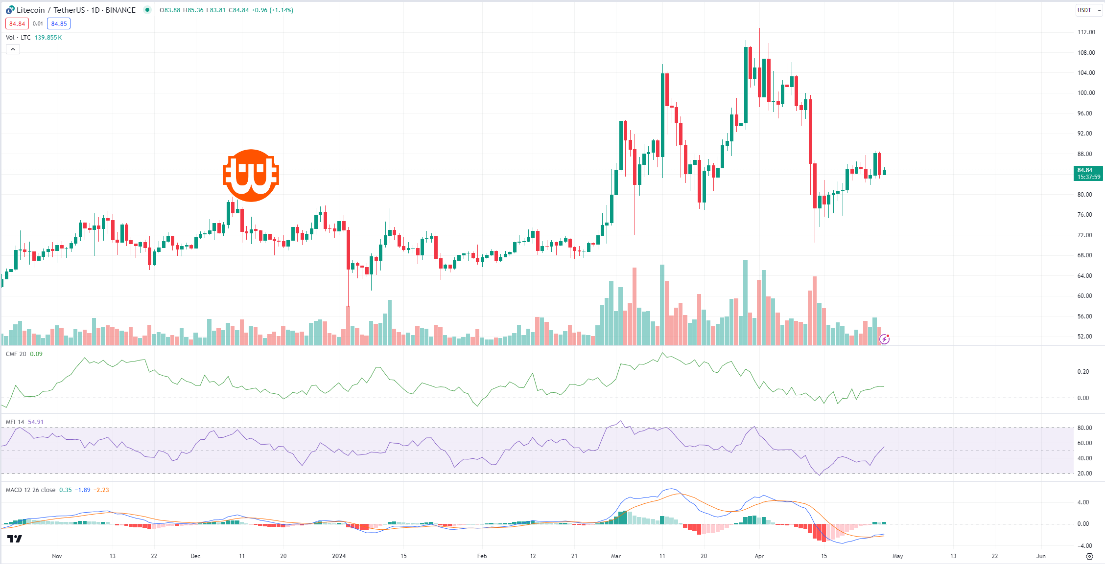 Legutóbb, amikor az LTC árfolyama e fölé a szint fölé emelkedett, a coin 2024. április elején 110 dollárig jutott.