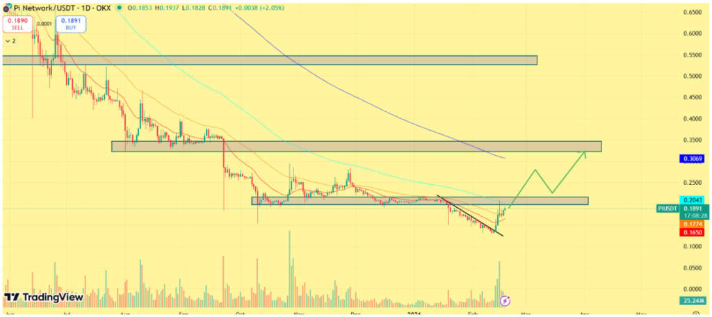 A Pi Network árfolyama kilépett a tiszta csökkenő trendből, és stabilizációs fázisba lépett.