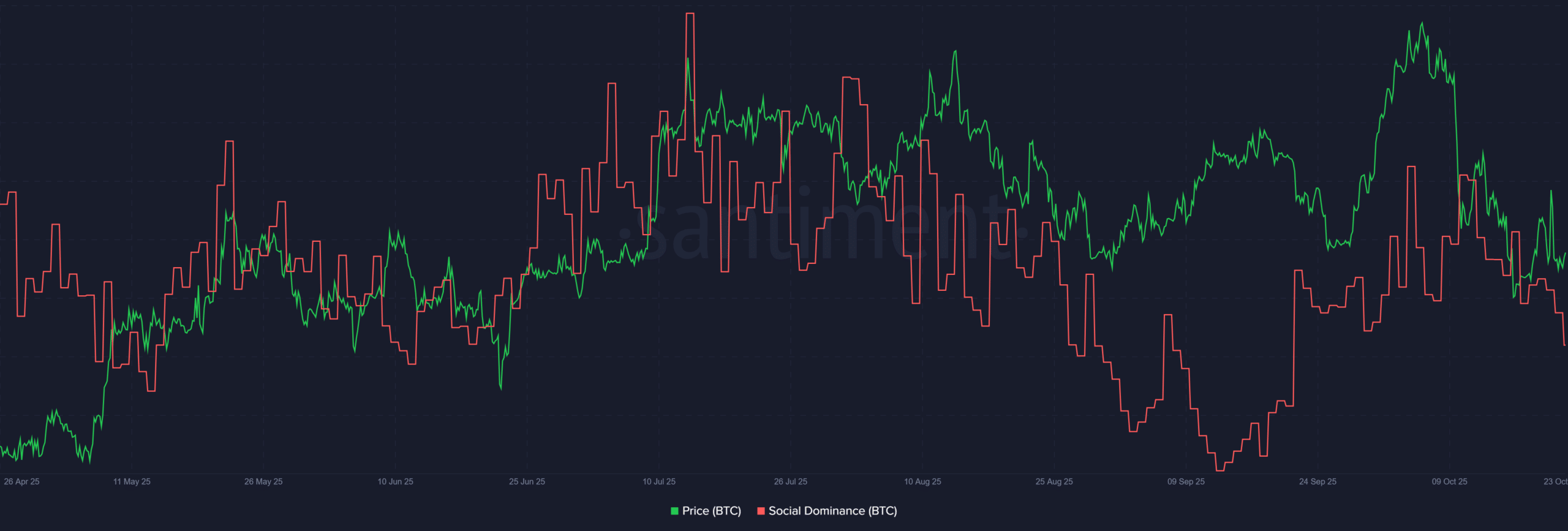 Nem meglepő, hogy a Santiment „Social Dominance (FOMO)” mutatója részben egyetértett vele.