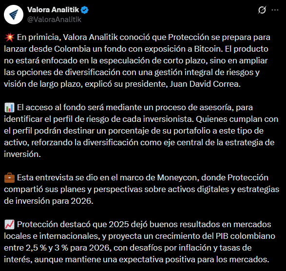 A kezdeményezést Juan David Correa, a Protección vezérigazgatója erősítette meg egy helyi pénzügyi portálnak adott interjúban.