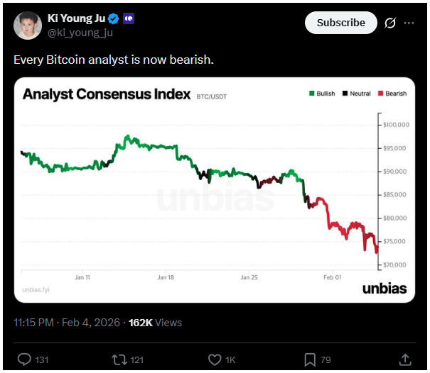 A hangulat romlását jól jelzi Ki Young Ju megjegyzése is, aki szerint „szinte minden Bitcoin-elemző most medvés”.