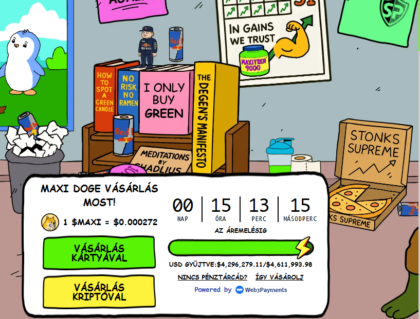 A Maxi Doge nem a következő technológiai áttörésként pozicionálja magát, hanem mint egy memecoin, amely pontosan eltalálja a jelenlegi kereskedői hangulatot.