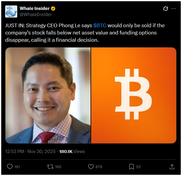 Michael Saylor ikonikus mondata most először kapott repedést: a jelenlegi vezérigazgató, Phong Le, elismerte, hogy vészhelyzetben valóban szükség lehet BTC-eladásra.