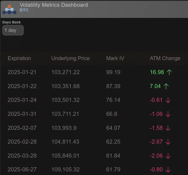 „BTC: a január 21-i lejárat 12 óra múlva esedékes, és még mindig 100%-os árképzés. Eszerint nem a beiktatási beszéd volt a középpontban. A piac még mindig óvatos/várja a volatilitást.”