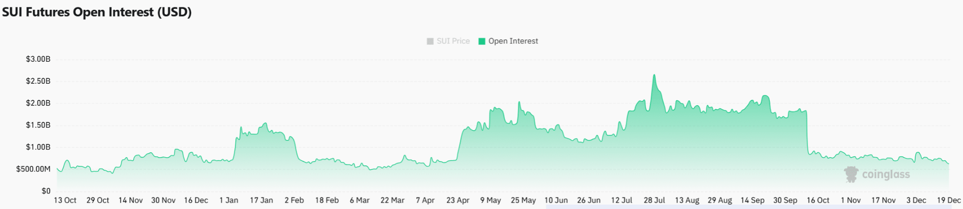 A SUI árfolyam jelenleg egy csökkenő ék alakzatban mozog, és az alsó határt ostromolja az 1,32–1,38 dolláros támasz környékén.