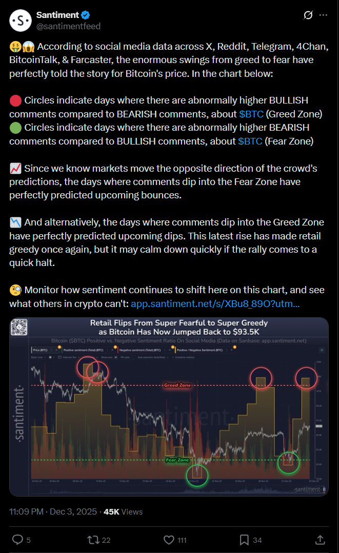 Ez a borús társadalmi hangulat éles ellentétben áll a pozitív on-chain és intézményi jelekkel.