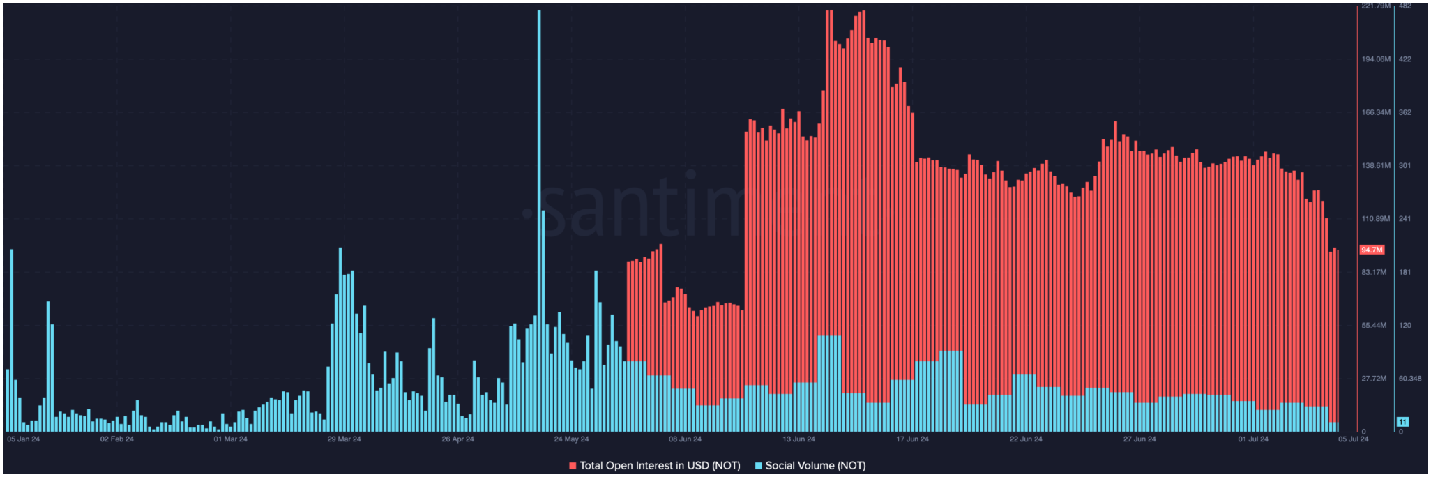A másik figyelemre méltó csökkenés, amely a NOT árfolyamának esését táplálta, a Social Volume.