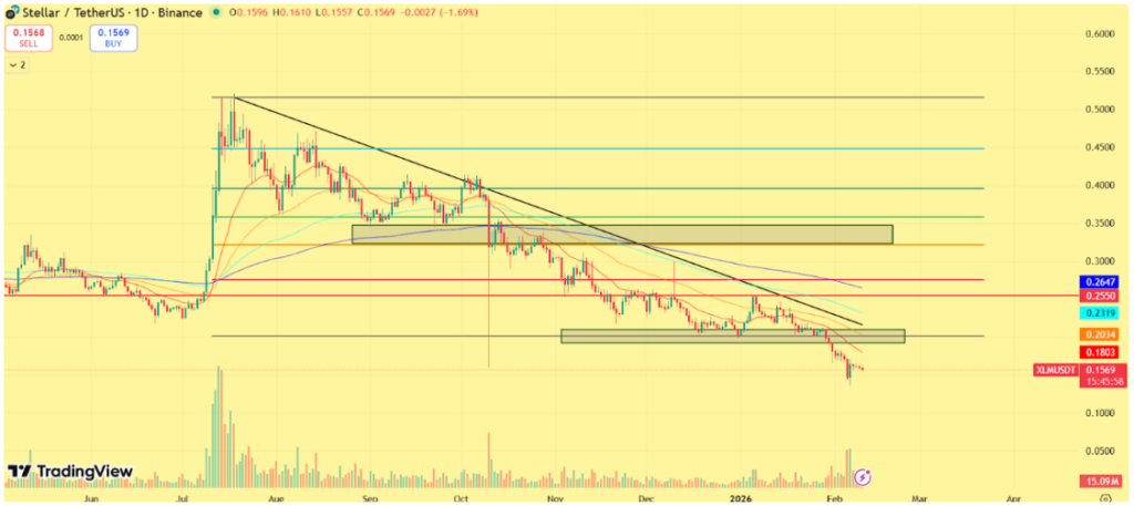 A Stellar árfolyama továbbra is nyomás alatt áll, miközben a szélesebb kriptopiac nehezen talál kapaszkodót.