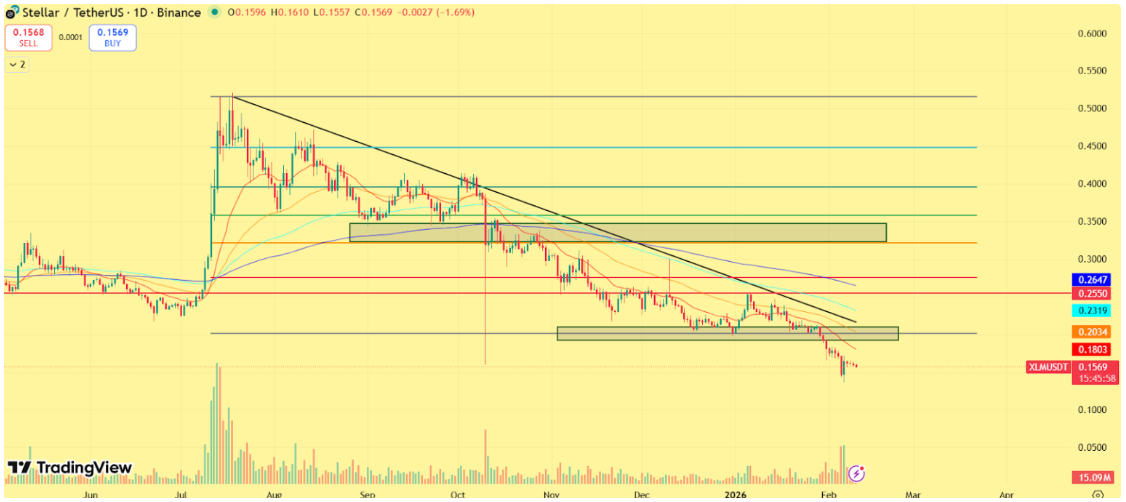A Stellar árfolyama továbbra is nyomás alatt áll, miközben a szélesebb kriptopiac nehezen talál kapaszkodót.