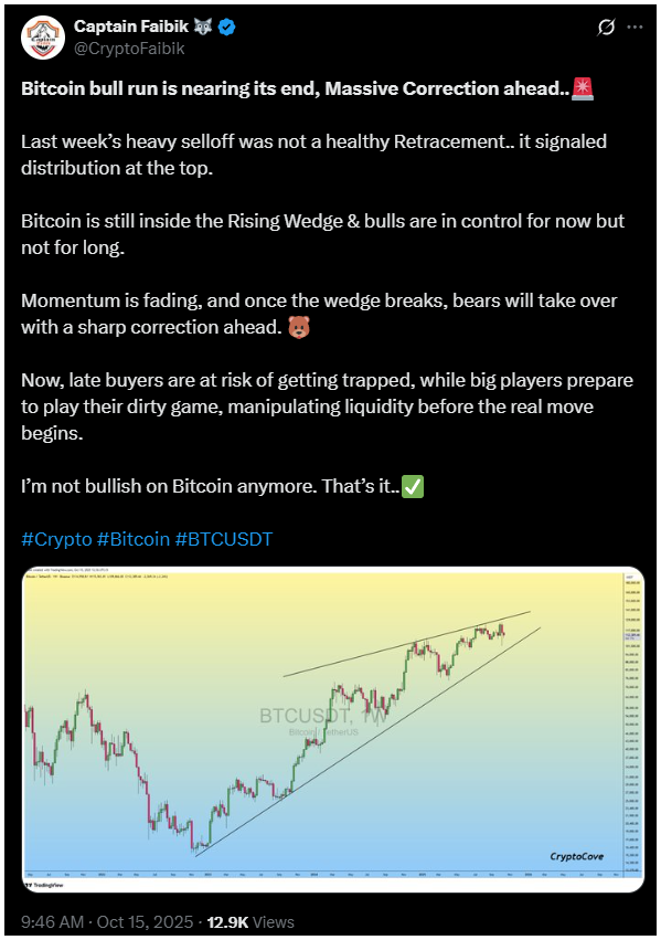 A kriptoelemző Captain Faibik szerint a mostani visszaesés nem egy átlagos korrekció, hanem egy nagyobb trendforduló előjele lehet, amelybe a későn érkezett befektetők könnyen „beleragadhatnak”.