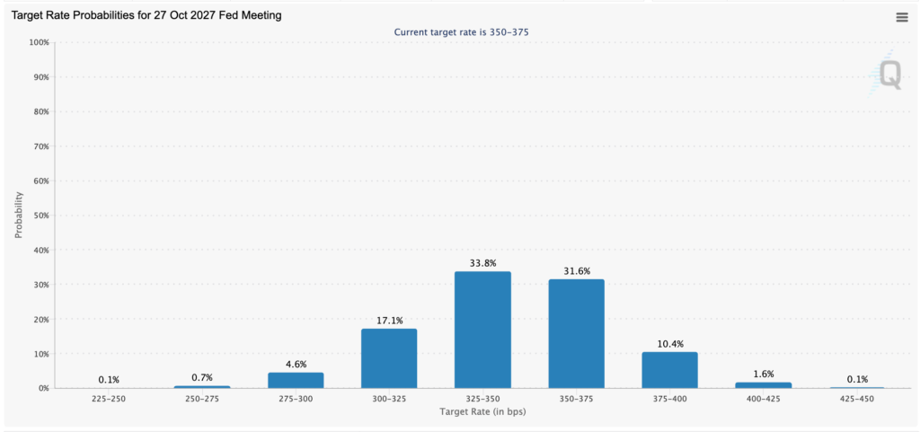 Az első kamatcsökkentés időpontja egyre inkább 2027 októbere felé tolódik.