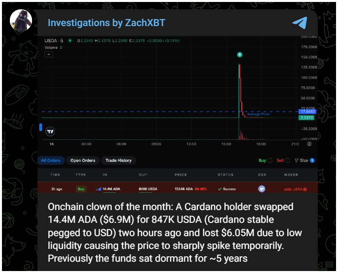 Egy nagy ADA-tulajdonos hétvégén tanulta meg a DeFi egyik legkeményebb leckéjét: a likviditás mindennél fontosabb.