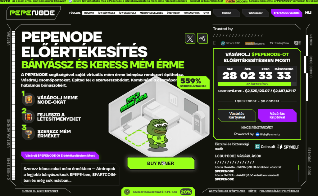 A PEPENODE tehát nem csak egy mémérme – hanem egy mine-to-earn rendszer, amely a játékos bányászatot és a közösségi irányítást ötvözi.