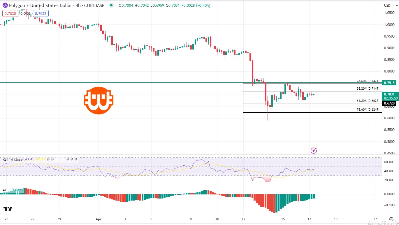 Ha ez így van, akkor a MATIC árfolyama a 0,71 dolláros irányba indulhat, ahol a 0,236-os Fibonacci-szint helyezkedett el.