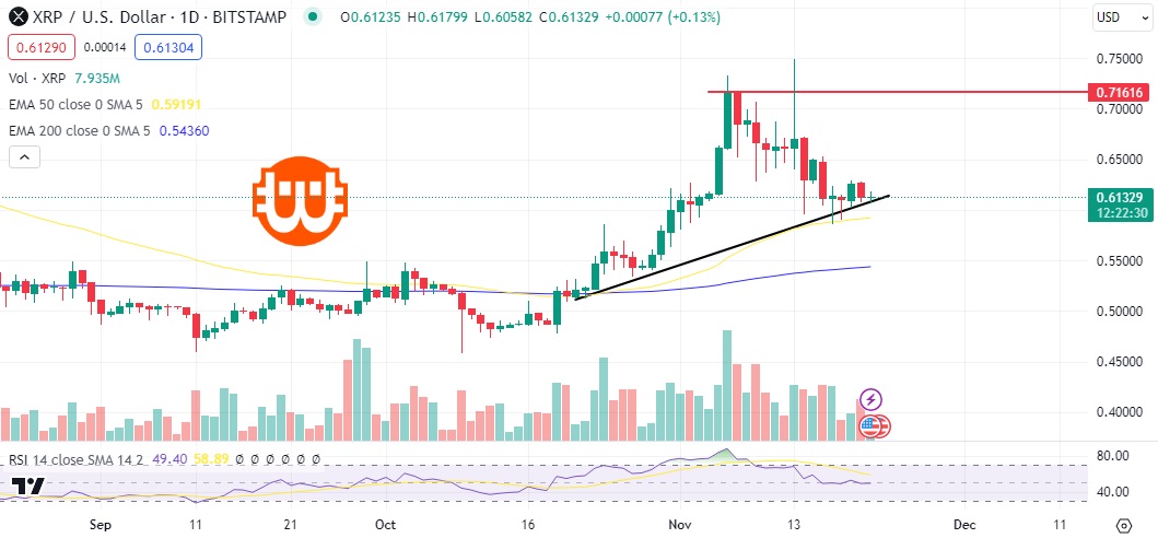 Az elmúlt 24 órában a Ripple (XRP) árfolyama 2,5%-ot esett, és a 0,61329 dollárig történő elmozdulás az elmúlt héten 6%-os esést is jelentett.