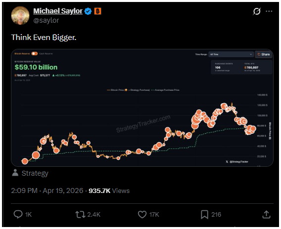— Michael Saylor (@saylor) April 17, 2026