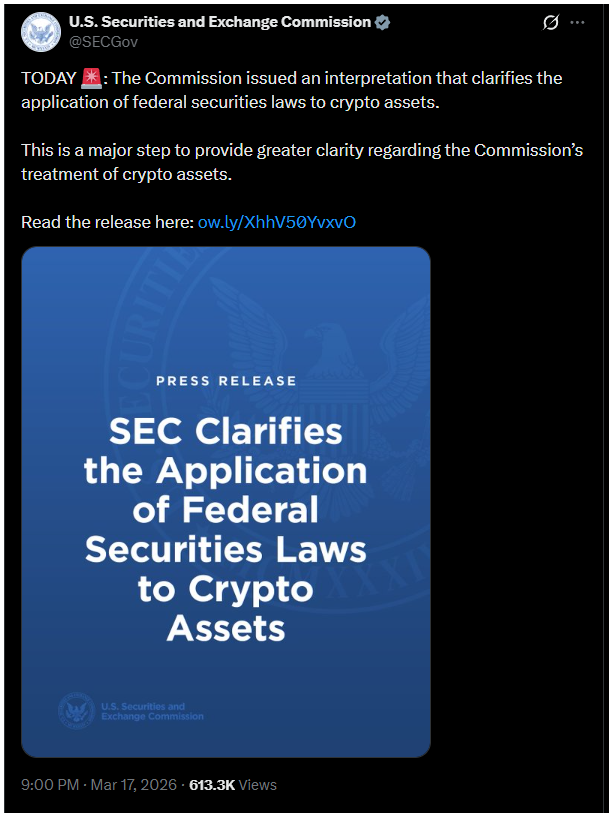 Az SEC egy friss értelmező közleményben részletesen kifejtette, hogyan tekint a különböző digitális eszközökre a jövőben.