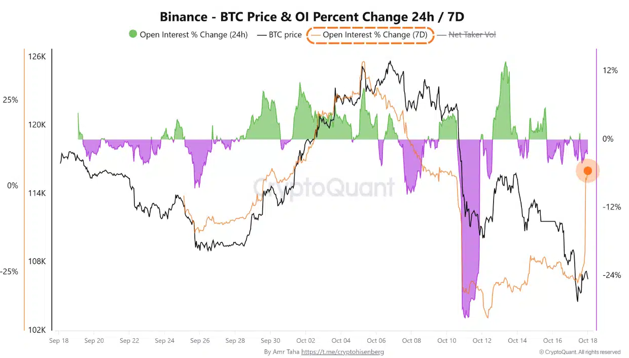 Az elmúlt héten a Binance nyitott pozícióinak (OI) volumene több mint 30%-kal nőtt, ami az utóbbi hónapok egyik legmeredekebb emelkedése.