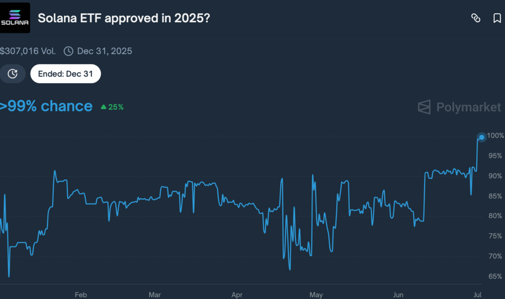 A Polymarket szerint az esélyek az elmúlt 24 órában 25%-kal nőttek, és elérték a 99%-ot – ez pedig jelentős lökést adott a piacnak.